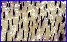 These 1-5 hair "bundles" usually exit the scalp through just a single pore! When examined under a powerful microscope, these "Follicular Units" are clearly distinct anatomical entities, “individually wrapped” by a layer of (connective) tissue.