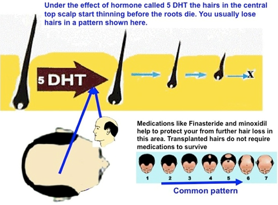 You lose hair in front and on the top but a horseshoe shaped area at the back and on the sides is un affected.